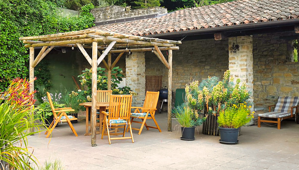wo Sie Ihre Mahlzeiten geniessen können oder bei einem Glas Wein entspannt ein Buch lesen können.